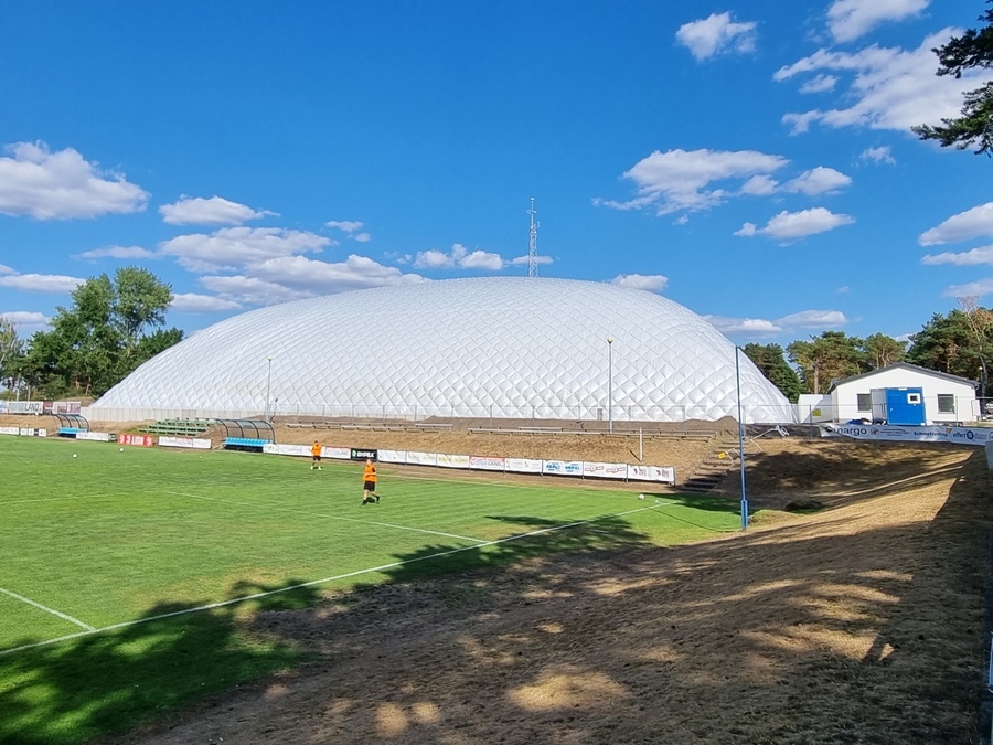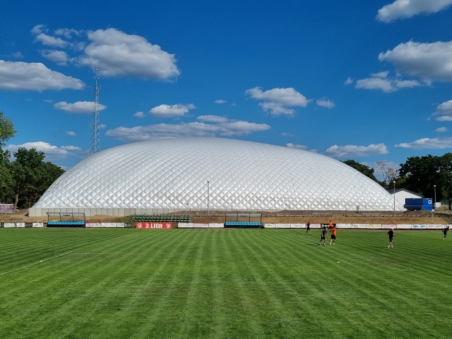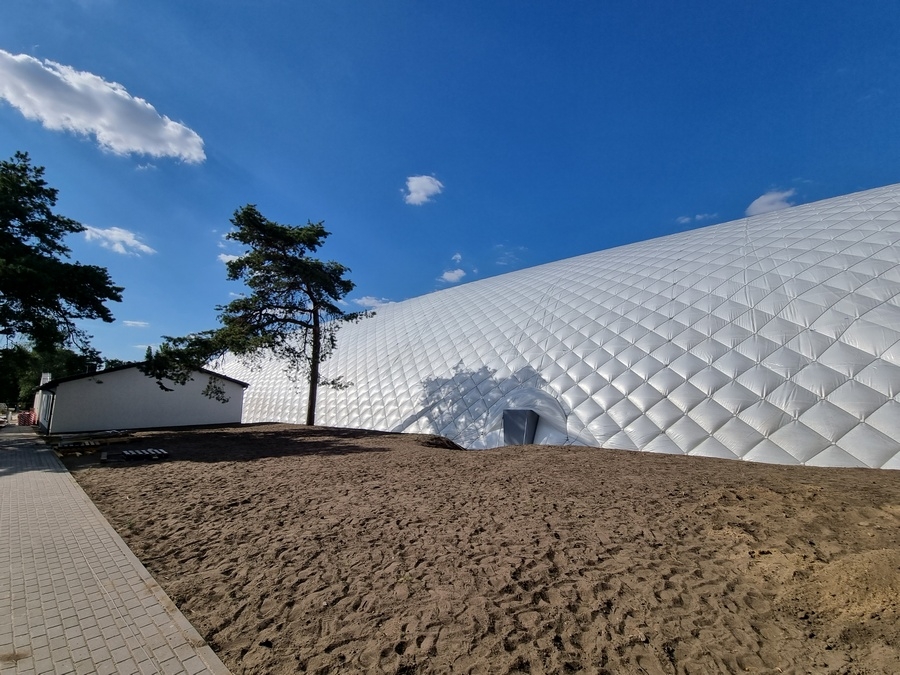 W środę od wczesnych godzin porannych trwały prace związane z nadmuchaniem kopuły boiska przy ul. Sulechowskiej w Zielonej Górze. Balon przykrył powierzchnię ponad 8 tys. metrów kwadratowych. Nowy obiekt estetycznie zmienia wygląd całego kompleksu MOSIR.