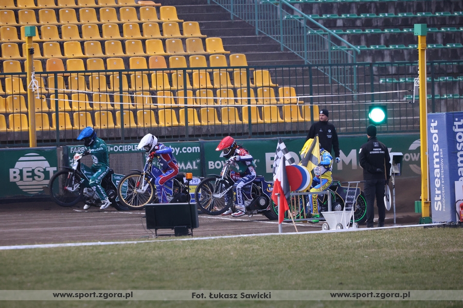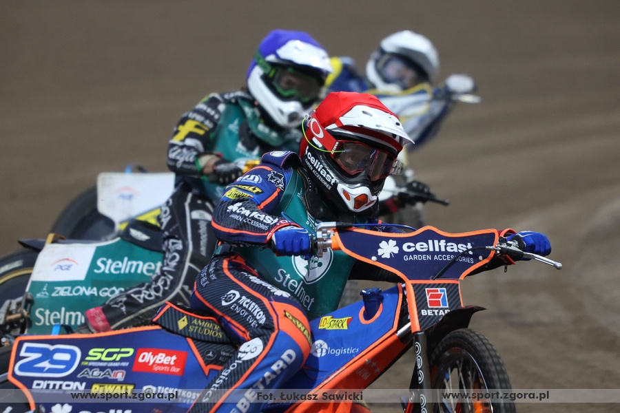 Pierwsze biegi ułożyły się jeszcze pod kontrolą gospodarzy. Falubaz rozpoczął od zwycięstwa 4:2, a po dwóch wyścigach utrzymywał minimalne prowadzenie. Szybko jednak okazało się, że torunianie przyjechali do Zielonej Góry bardzo konkretni. Trzeci bieg był momentem zwrotnym pierwszej fazy meczu, bo po wykluczeniu Mitchella McDiarmida goście bezlitośnie wykorzystali przewagę liczebną i wygrali podwójnie.
